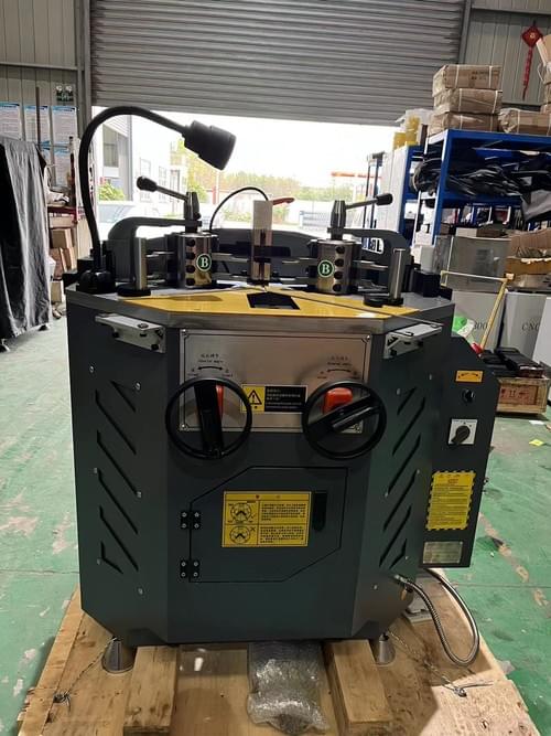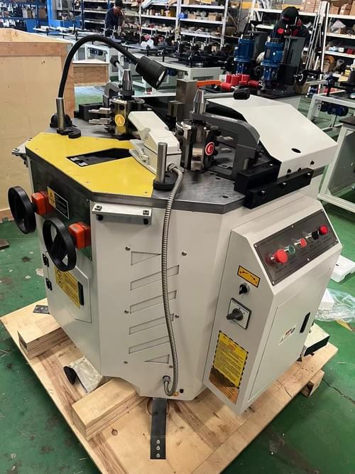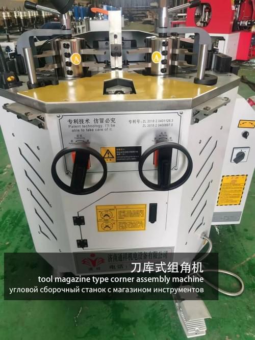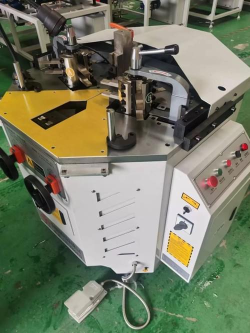This corner joining machine is hydraulic, and it comes with 3 sets of tools. It can be used on any types of material such as aluminum or plastic.